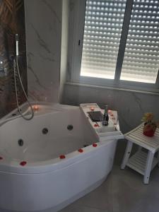 This double room's standout features are the hot tub and fireplace. Offering free toiletries and bathrobes, this double room includes a private bathroom with a bath, a shower and a bidet. The spacious air-conditioned double room offers a flat-screen TV with streaming services, a private entrance, soundproof walls, a tea and coffee maker as well as mountain views. V této ubytovací jednotce se nachází 1 postel.