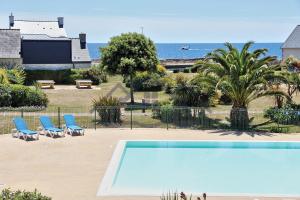 Гости LocaLise au Guilvinec - A16 - Vue sur la mer, la piscine et le jardin - Tout à pied, plages, port, centre, commerces, marché - Wifi inclus - Animaux bienvenus - Linge de lit inclus могут воспользоваться открытым бассейном, а также прогуляться или отдохнуть в саду.