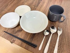 Апартаменты Locanda Shinosaka 201 ロカンダ新大阪 201 с кондиционером включают спальню и ванную комнату с биде, душем и феном. Полотенца и постельное белье включены в стоимость проживания в Locanda Shinosaka 201 ロカンダ新大阪 201.
