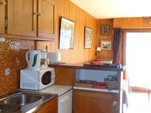 Questo appartamento presenta una TV. La cucina di Location Studio Les Gets - 4 pers - Centre, parking, au calme - FR-1-802-77 dispone di frigo, forno, microonde, macchina da caffè e bollitore.
