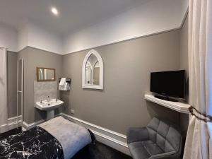 Providing free toiletries, this single room includes a shared bathroom with a hairdryer. The single room provides a flat-screen TV, a tea and coffee maker, a wardrobe, a carpeted floor as well as a quiet street view. The unit offers 1 bed.