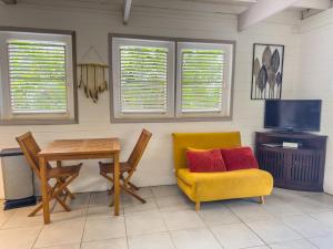 This air-conditioned holiday home consists of 1 living room, 1 separate bedroom and 1 bathroom with a shower. Guests will find a refrigerator, kitchenware, an oven and a microwave in the well-fitted kitchen. The holiday home also offers a barbecue. Featuring a terrace with garden views, this holiday home also provides a washing machine and a TV with cable channels. The unit offers 2 beds.