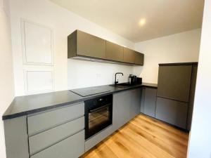 Located at Loft - Centre Ville, this apartment is equipped with 2 bedrooms, a seating area, a flat-screen TV, a bathroom with a shower, and a kitchen with an oven and dishwasher. Towels and bed linen are provided at the property. At Loft - Centre Ville, there is a dressing room for guests to change in.