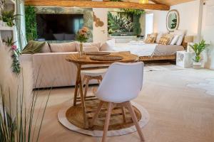 This apartment features a hot tub. Guests can make meals in the kitchen that has a stovetop, a refrigerator, kitchenware and a microwave. This apartment is air-conditioned and has a seating area with a flat-screen TV, a coffee machine, a dining area, a sofa, as well as heating. The unit has 1 bed.