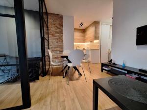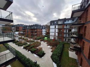 W apartamencie zapewniono balkon, sypialnię (1), salon z telewizorem z płaskim ekranem, aneks kuchenny ze standardowym wyposażeniem, takim jak lodówka i zmywarka, a także łazienkę (1) z wanną lub prysznicem. Obiekt Loft Gdańskie Młyny oferuje widok na ogród. Ręczniki i pościel są dostępne w apartamencie Loft Gdańskie Młyny.