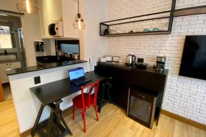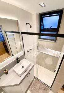 Tento apartmán má 1 ložnici, kuchyň s kompletním vybavením včetně mikrovlnné trouby a minibaru a 1 koupelnu s sprchou. Apartmán v Loft lindo e aconchegante no centro de Teresópolis disponuje TV s plochou obrazovkou a koupelnou s bezplatnými toaletními potřebami.