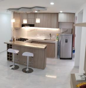The air-conditioned apartment consists of 3 bedrooms, a fully equipped kitchen with dining area, and 1 bathroom. A flat-screen TV is provided. Loft Moderno con aire , en conjunto Goya con piscina T12 is allergy-free and non-smoking.