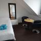 This twin/double room has a electric kettle, view and a TV with Netflix. Beds can not be separated due to double head board.