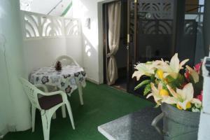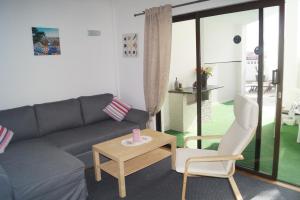 This small, one-bedroom apartment with tiled floors offers sea views, a furnished terrace and a fully-equipped kitchen with a coffee machine. The living room has a flat-screen TV.