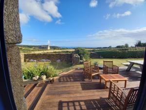 The spacious villa with a terrace and sea views has 5 bedrooms, 2 living rooms, a flat-screen TV, an equipped kitchen with a dishwasher and an oven, and 2 bathrooms with a bath. Guests at the property can enjoy the surroundings from the outdoor dining area or stay warm by the fireplace on colder days. For added privacy, longère spacieuse au calme, superbe vue mer features a private entrance.
