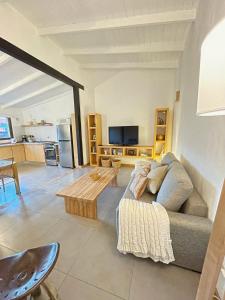 Featuring a private entrance, this holiday home consists of 1 living room, 1 separate bedroom and 1 bathroom with a walk-in shower and a bidet. Guests will find a stovetop, a refrigerator, a dishwasher and an oven in the kitchen. The holiday home also offers a barbecue. Boasting a terrace with garden views, this holiday home also provides a washing machine and a flat-screen TV. The unit offers 2 beds.