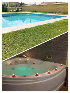 This luxurious holiday home has a pool with a view, a hot tub and a spa bath. Boasting a private entrance, this holiday home features 1 living room, 1 separate bedroom and 1 bathroom with a walk-in shower and a hairdryer. Guests will find a refrigerator, a dishwasher, kitchenware and a microwave in the well-equipped kitchen. The holiday home also comes with a barbecue. Featuring a patio, this holiday home also features a washing machine, a coffee machine and a flat-screen TV. The unit has 2 beds.
