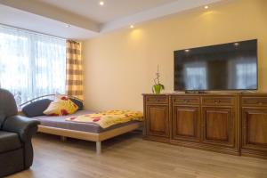 The spacious apartment has 2 bedrooms and 1 bathroom with a shower and free toiletries. Guests can make meals in the kitchen that has a stovetop, a refrigerator, a dishwasher and kitchenware. This apartment is air-conditioned and features a flat-screen TV with satellite channels, a washing machine, a seating area and a dining area. The unit has 2 beds.