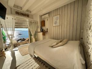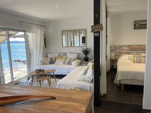 Lou cabanou nabízí zahradu, soukromou pláž a ubytování s klimatizací, terasou a bezplatným Wi-Fi. Pláž Plage de la Madrague se nachází 400 metrů odtud. Hosté ubytování lou cabanou mohou využívat soukromé parkoviště přímo na místě.