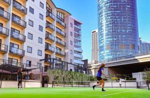 Con una terrazza che affaccia sul giardino, una piscina all'aperto e un campo da tennis, Lovely city apartment with private courtyard, pool, free parking, gym si trova a Perth, vicino a Perth Convention and Exhibition Centre e a 1,7 km da Perth Concert Hall. Lovely city apartment with private courtyard, pool, free parking, gym ospita un ristorante e offre gratuitamente WiFi e parcheggio privato.