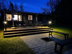 This holiday home's standout feature is the fireplace. Featuring a private entrance, this air-conditioned holiday home is comprised of 1 living room, 3 separate bedrooms and 1 bathroom with a walk-in shower. Guests will find a stovetop, an oven, a microwave and a tea and coffee maker in the kitchen. The holiday home also has a barbecue. Boasting a terrace with garden views, this holiday home also offers a washing machine and a flat-screen TV. V této ubytovací jednotce je k dispozici 4 postele.