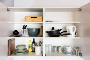 Klimatizovaný apartmán LOVELY RELAX Apartment zahrnuje 1 ložnici, TV s plochou obrazovkou, jídelní kout a kuchyň s lednicí a myčkou.