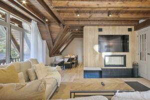 This apartment features a fireplace. This spacious apartment features a kitchen, a seating area, 4 separate bedrooms and 3 bathrooms with a shower and a hairdryer. Meals can be prepared in the well-fitted kitchen, which has a refrigerator, kitchenware, an oven and a microwave. Boasting a balcony with mountain views, this apartment also features a washing machine and a TV. The unit has 6 beds.