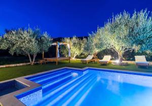 The pool with a view and hot tub are the special features of this holiday home. Boasting a private entrance, this air-conditioned holiday home comes with 2 living rooms, 3 separate bedrooms and 3 bathrooms with a walk-in shower and a bath. Guests will find a stovetop, a refrigerator, a dishwasher and kitchenware in the fully equipped kitchen. The holiday home also includes a barbecue. The spacious holiday home features a washing machine, soundproof walls, a tea and coffee maker, a flat-screen TV with cable channels, as well as garden views. The unit has 6 beds.