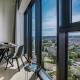 L\'appartement Luksusowy apartament z widokiem, basenem i sauną Hanza Tower Szczecin dispose d\'une chambre, d\'une salle de bains, de linge de lit, de serviettes, d\'une télévision par satellite à écran plat, d\'un coin repas, d\'une cuisine équipée et d\'une terrasse avec vue sur la ville.