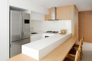 Klimatizovaný apartmán v Lux 45 - Leblon com elegância e conforto má 1 ložnici, TV s plochou obrazovkou a kuchyň s myčkou a lednicí. Apartmán ubytování poskytuje hostům ručníky a ložní prádlo.