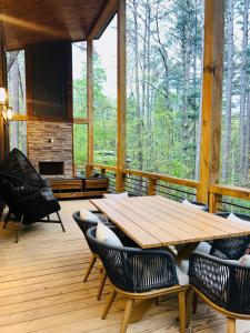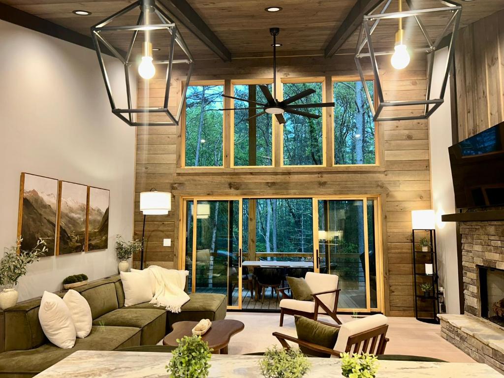 Lux Blue Ridge Cabin, Hot tub, Swing, PingPong!, que tiene terraza, bar y spa y centro de bienestar, ofrece alojamiento en Mineral Bluff con wifi gratis y vistas al jardín. La casa o chalet, que cuenta con parking privado gratis, está en una zona en la que se pueden practicar actividades como senderismo, pesca y ping pong.