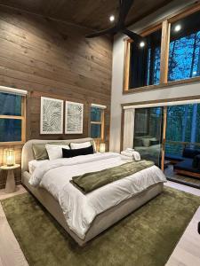 La casa con aire acondicionado en Lux Blue Ridge Cabin, Hot tub, Swing, PingPong! consta de 3 dormitorios, sala de estar, cocina equipada con nevera y cafetera, y 3 baños con ducha y bañera de hidromasaje. La casa o chalet Lux Blue Ridge Cabin, Hot tub, Swing, PingPong! proporciona toallas y ropa de cama.