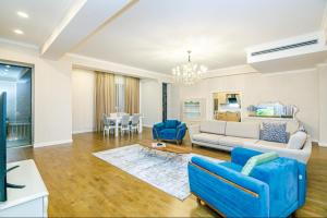 El apartamento con aire acondicionado en Luxary Home VIP Hillton dispone de tres dormitorios, sala de estar, cocina con nevera y cafetera, y tres baños con ducha y bidet. El apartamento el alojamiento dispone de toallas y ropa de cama.