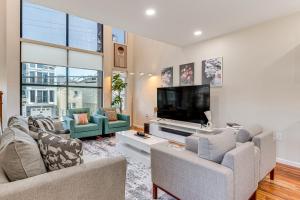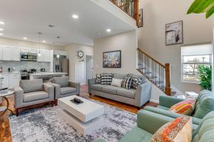 L'alloggio climatizzato di Luxe Newark Retreat with Rooftop Deck Pets Welcome! include 3 camere da letto, soggiorno, 3 bagni con doccia e set di cortesia, e cucina con frigo e macchina da caffè. La dotazione di questa casa vacanze presso la struttura include lenzuola e asciugamani.