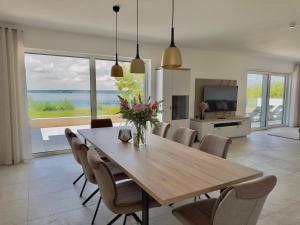 This villa's standout feature is the sauna. This spacious villa is comprised of 1 living room, 3 separate bedrooms and 3 bathrooms with a walk-in shower and free toiletries. Guests will find a stovetop, a refrigerator, a dishwasher and kitchenware in the fully equipped kitchen. The villa also has a barbecue. The unit features a private entrance, lake views, a terrace and wine/champagne is featured for guests. The unit offers 4 beds.