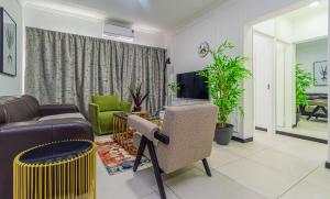 Questo appartamento presenta un balcone, 2 camere da letto, un soggiorno e una cucina con frigorifero e forno. Lenzuola e asciugamani sono a vostra disposizione presso Luxurious sandton apartment with Inverter.