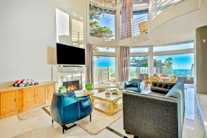 This holiday home's special feature is the fireplace. Boasting a private entrance, this spacious holiday home also includes 3 bedrooms, a seating area and 3 bathrooms with a walk-in shower and a bath. Guests will find a stovetop, a refrigerator, a dishwasher and kitchenware in the fully equipped kitchen. The holiday home also features a barbecue. The air-conditioned holiday home offers a TV with streaming services, a washing machine, a dining area, tumble dryer as well as sea views. The unit has 5 beds.