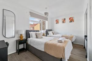 Questo appartamento comprende 3 camere da letto, un soggiorno, una cucina con utensili, frigorifero e bollitore elettrico, e 1 bagno con doccia e set di cortesia. Luxury 3 bedroom house in Ashford with WiFi and Free parking fornisce lenzuola e asciugamani ai propri ospiti.