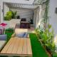 Klimatizovaný apartmán v Luxury 2 bedrooms apartment in kantaoui má 1 ložnici, plně vybavenou kuchyň a terasu s výhledem do zahrady. Vybavení ubytování zahrnuje TV s plochou obrazovkou.