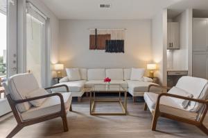 Featuring a private entrance, this spacious apartment also comprises 2 bedrooms, a seating area and 2 bathrooms with a bath and a shower. Guests will find a stovetop, a refrigerator, a dishwasher and kitchenware in the fully equipped kitchen. The apartment also provides guests with a barbecue. The air-conditioned apartment provides a TV with streaming services, a washing machine, a dining area, a wardrobe as well as garden views. V této ubytovací jednotce je k dispozici 2 postele.