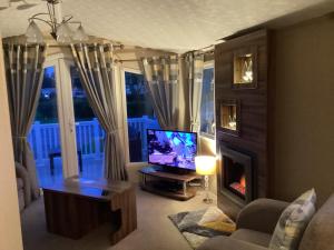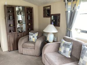 This mobile home comprises 1 living room, 2 separate bedrooms and 2 bathrooms with a bath and a shower. A seating area with a flat-screen TV, a dining area and outdoor furniture are featured in this mobile home. The unit offers 4 beds.