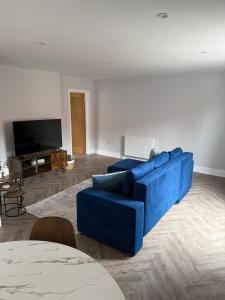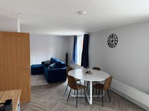 Apartmán Luxury Holt Duplex with Bath Suite zahrnuje 1 ložnici, TV s plochou obrazovkou, jídelní kout, kuchyň s lednicí a obývací pokoj.