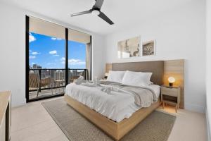 The apartment with a balcony and city views features 1 bedroom, a living room, a flat-screen TV, an equipped kitchen with a dishwasher and an oven, and 1 bathroom with a bath. Towels and bed linen are provided at the property. Luxury Panoramic Views - The Ultimate Downtown Getaway includes an outdoor dining area.