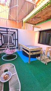 Huoneiden lukumäärä: 1Guests will have a special experience as this apartment provides a hot tub. The air-conditioned apartment has 2 bedrooms, 1 bathroom and a kitchen. The apartment's kitchen is available for cooking and storing food. The spacious apartment offers a washing machine, heating and a terrace. Yksikössä on varustettu 3 vuoteella.