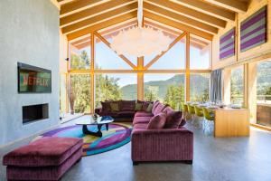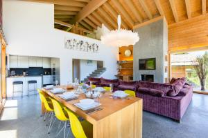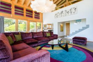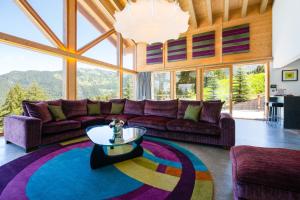 This luxurious chalet has a hot tub, a sauna and a fireplace. This spacious chalet includes 1 living room, 4 separate bedrooms and 5 bathrooms with a bath and a shower. Guests will find a refrigerator, a dishwasher, kitchenware and an oven in the kitchen. The chalet also features a barbecue. The chalet is furnished with a desk and a seating area and offers a washing machine, a tea and coffee maker and mountain views. The unit has 5 beds.