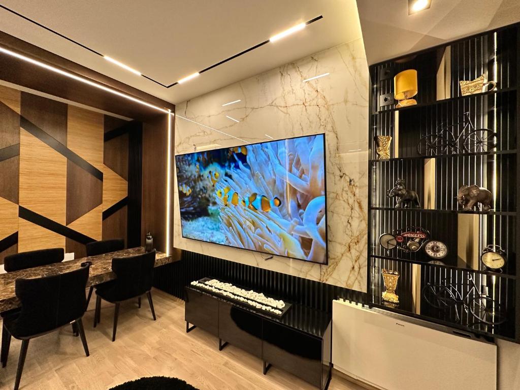 Guests will have a special experience as this apartment features a fireplace. In the fully equipped kitchen, guests will find a stovetop, a refrigerator, a dishwasher and kitchenware. The spacious air-conditioned apartment offers a flat-screen TV with streaming services, a washing machine, a minibar, a tea and coffee maker as well as lake views. The unit offers 2 beds.