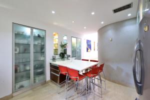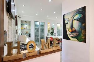 Tato vila s klimatizací má 6 ložnice, posezení, TV s plochou obrazovkou a kuchyň s lednicí. Vila Luxury villa with a heated pool, Jakuzi and a sea view 70m from the beach má pro hosty připraveny ručníky a ložní prádlo.