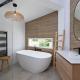 Tato vila s klimatizací má 4 ložnice, kuchyň s kompletním vybavením včetně lednice a myčky nádobí a 5 koupelny. Koupelna v ubytování Luxury Villa Ohana disponuje vanou i sprchou.