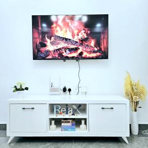 This apartment's special feature is the fireplace. The well-equipped kitchen features a stovetop, a refrigerator, kitchenware and an oven. The apartment provides a washing machine, soundproof walls, a tea and coffee maker, a flat-screen TV, as well as river views. The unit offers 1 bed.