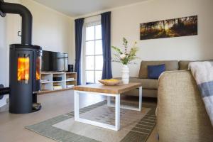The holiday home features 3 bedrooms, a TV with cable channels, a fully equipped kitchen with a dishwasher and an oven, a washing machine, and 1 bathroom with a shower. Luxushaus Bodstedt mit Lagunenschwimmen also features a seating area and a fireplace.