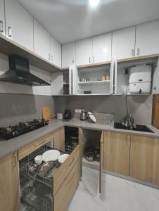 Apartmán ubytování zahrnuje 1 ložnici, 1 koupelnu, ložní prádlo, ručníky, TV s plochou obrazovkou, jídelní kout a plně vybavenou kuchyň. Z balkonu ubytování M's Cozy Unwind - Zinnia se nabízí výhled na město. V koupelně ubytování M's Cozy Unwind - Zinnia naleznete sprchu, bidet a fén.