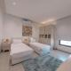The spacious apartment is equipped with 3 separate bedrooms, 3 bathrooms, a fully equipped kitchen with a dining area and oven, and a living room with a flat-screen TV.