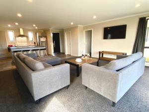 The spacious holiday home with a terrace and mountain views has 2 bedrooms, a living room, a flat-screen TV, an equipped kitchen with a dishwasher and an oven, and 2 bathrooms with a shower. Towels and bed linen are available in the holiday home at Mackenzie Hideaway. Mackenzie Hideaway includes an outdoor dining area.