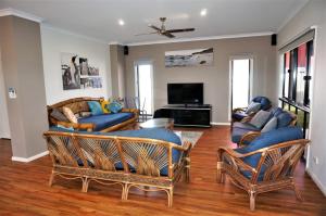 This spacious holiday home includes a kitchen, a seating area, 4 separate bedrooms and 2 bathrooms with a shower. Guests will find a stovetop, a refrigerator, a dishwasher and kitchenware in the well-fitted kitchen. The holiday home also features a barbecue. The air-conditioned holiday home offers a flat-screen TV, a washing machine, a dining area, a wardrobe as well as sea views. The unit has 8 beds.
