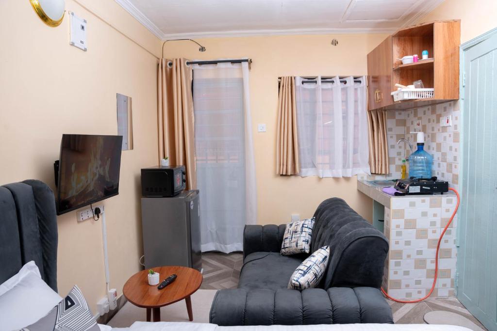 Este apartamento en Maggies Studios Naivasha cuenta con 1 dormitorio, zona de cocina y TV de pantalla plana.